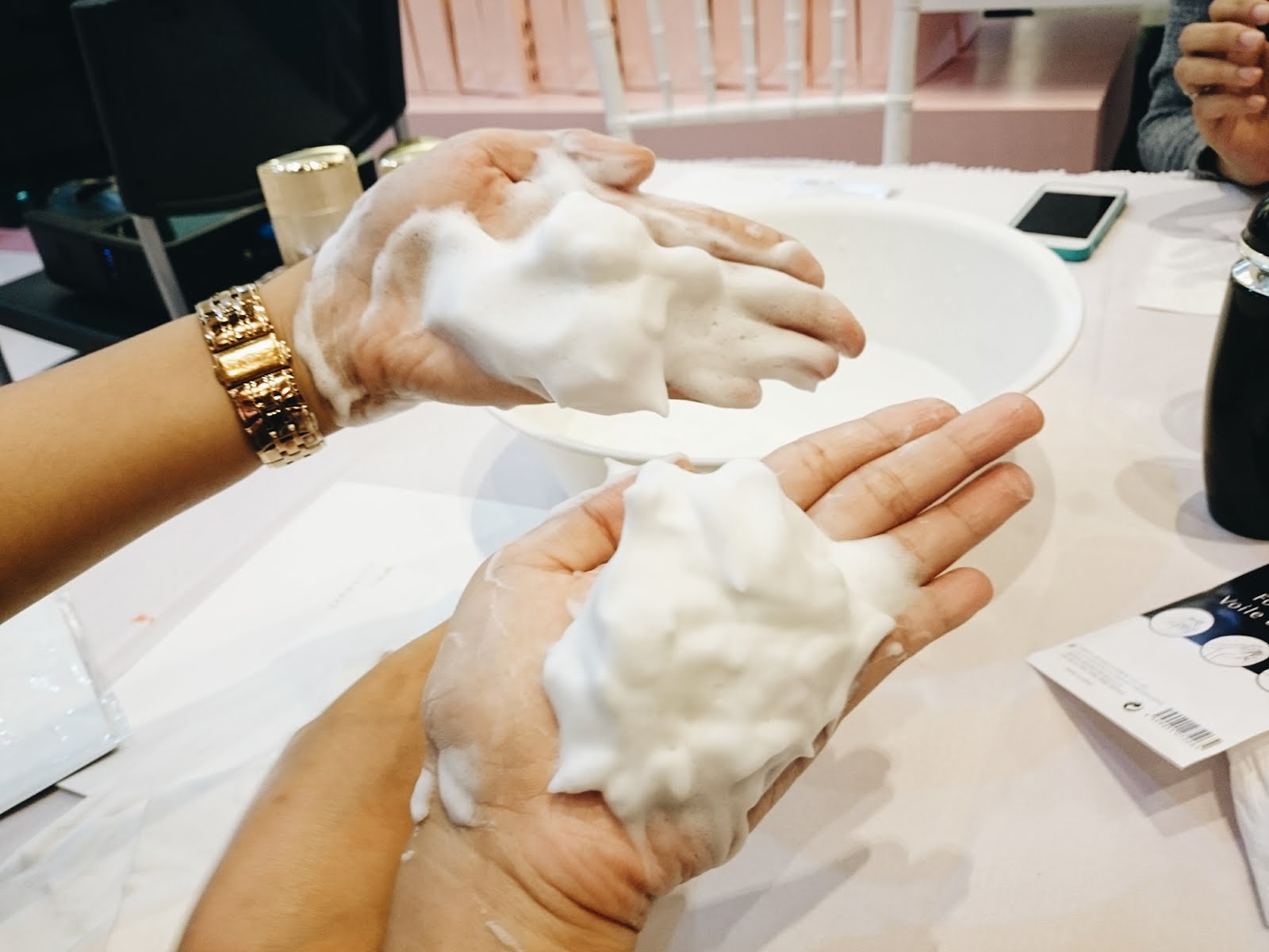 Saranari merupakan salah satu lini klasik Menard yang dengan kandungan ekstrak bunga casablanca, kolagen, elastin, dan hyaluronic acid, dapat meremajakan kulit dan melawan tanda-tanda penuaan dini dengan meningkatkan kelembaban serta elastisitas kulit. Canggih ya? Dan sejak tahun 1984, Saranari terus melakukan pengembangan melalui riset mengenai mekanisme kulit serta komposisi produk agar kulit kita semakin kinclong sempurna. Rangkaian produk Saranari terdiri dari washing cream, refresh massage, lotion, emulsion, krim pagi, krim malam, dan eye cream. Semua produk itu saya cobain pas acara berlangsung sembari dikasih tau gimana menggunakannya. Karena hasil coba-coba itu kece banget (di tangan, gak coba di muka), Saranari trial kit oleh-oleh dari acara itu sekarang sedang saya coba, dan akan saya share hasilnya ketika sudah 2 minggu mencoba. Tunggu yah.