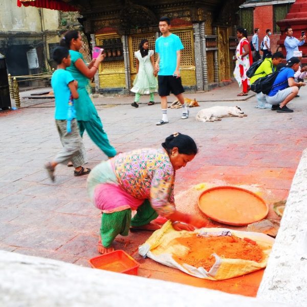 Tinggal di kawasan Thamel, Kathmandu yang lokasinya dekat ke mana-mana, membuat kami lumayan mudah menjangkau tempat-tempat cantik di sini. Selain itu, di Thamel banyak tempat menginap banyak yang murah, juga lokasi touristy (ditandai dengan banyaknya kedai makan, toko souvenir, dan bule nongkrong), dan banyak rumah makan halal tersedia disini. Di Thamel pun kami melihat banyak gambaran kehidupan sehari-hari Nepali. Pas pertama kali datang, kami menginap di Khangsar Guest House di pinggir jalan besar Thamel. Kami suka sekali duduk santai di atap guest house saat pagi. Dan kalau kamu ke Nepal juga, pastikan kamu juga coba menghabiskan pagi di sini. Kenapa? Karena saat pagi, banyak aktivitas menarik yang dilakukan Nepali.
